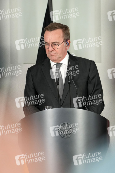 Boris Pistorius beim Treffen zum Gespräch mit drei Amtskollegen und einer Unterstaatssekretärin aus vier europäischen Ländern über die Stärkung der europäischen Sicherheit und Verteidigung mit anschließendem gemeinsamen Pressestatement im Bundesministerium der Verteidigung. Berlin, 25.11.2024