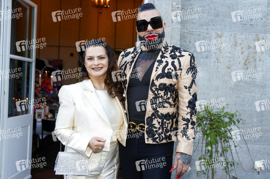 Theodora Kontodimou und Harald Glööckler beim exklusiven Dinner von Harald Glööckler und der Vorstellung seiner Muse Tatiana Makarova im Hotel SO/ Berlin Das Stue. Berlin, 09.05.2025