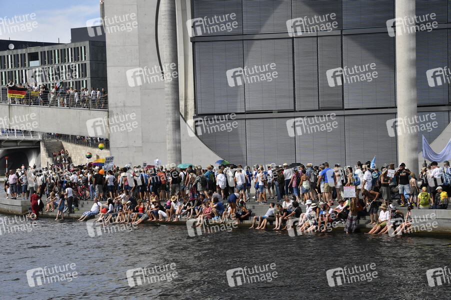Mehrere Tausend Menschen bei der Demonstration und Kundgebung gegen die Corona-Politik der Bundesregierung unter dem Motto 'Das Ende der Pandemie - Der Tag der Freiheit' von der Straße Unter den Linden zur Straße des 17. Juni. Berlin, 01.08.2020
