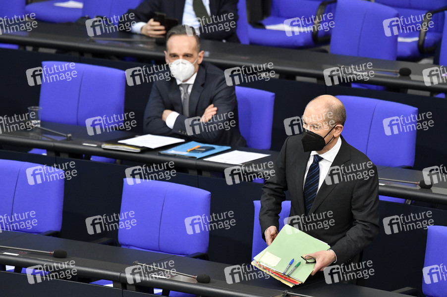 Heiko Maas und Olaf Scholz in der 208. Sitzung des Deutschen Bundestages im Reichstagsgebäude. Berlin, 10.02.2021
