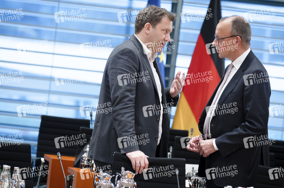 Lars Klingbeil und Friedrich Merz bei der Konferenz der Ministerpräsidenten der Länder im Kanzleramt. Berlin, 04.12.2025