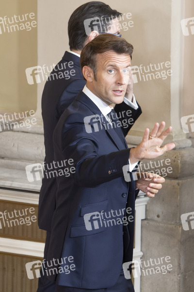 Stevo Pendarovski und Emmanuel Macron beim Fototermin zum Gala Dinner anlässlich des Treffens der Nato-Staats- und Regierungschefs im Palacio Real. Madrid, 28.06.2022