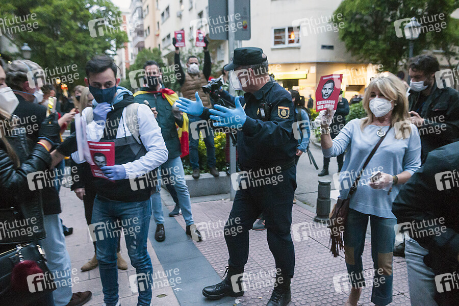 Proteste gegen die Corona-Eindämmungsmaßnahmen in der Calle Nunez de Balboa. Die rechtsextreme Partei Vox hat die Bürger aufgefordert mit Protesten gegen die Regierung 'die Straßen zurück zu erobern'. Madrid, 14.05.2020
