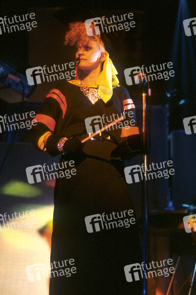 Alannah Currie von den Thompson Twins live im Hammersmith Odeon. London, 12.05.1984