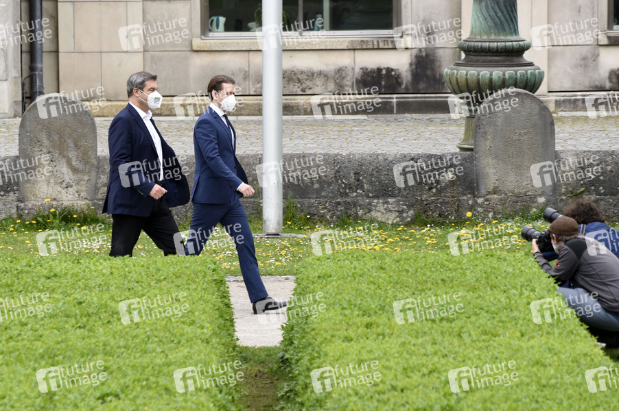 Markus Söder und Sebastian Kurz bei einem persönlichen Austausch des bayerischen Ministerpräsidenten mit dem österreichischen Bundeskanzler in der Staatskanzlei. München, 11.05.2021