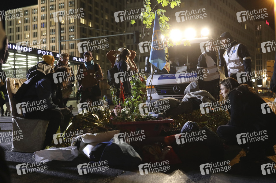 Aktivisten der Klimabewegung 'Extinction Rebellion' blockieren den Potsdamer Platz. Berlin, 07.10.2019