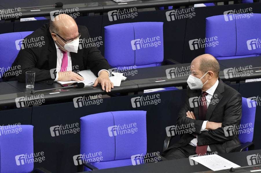 Peter Altmaier und Olaf Scholz in der 206. Sitzung des Deutschen Bundestages im Reichstagsgebäude. Berlin, 28.01.2021