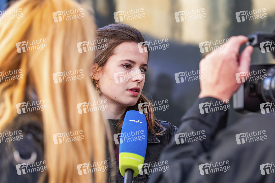 Luisa Neubauer bei der Demonstration unter dem Motto 'Wir sind die Brandmauer' gegen die AfD und den Rechtsruck auf dem Neumarkt. Dresden, 25.02.2024