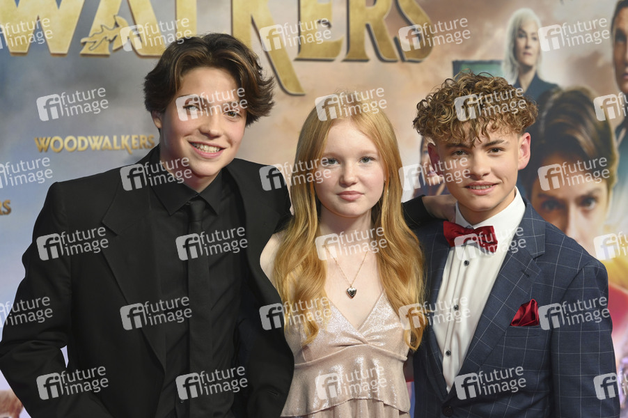 Emile Cherif, Lilli Falk und Emil Bloch bei der Premiere des Kinofilms 'Woodwalkers' im Mathäser Filmpalast. München, 11.10.2024
