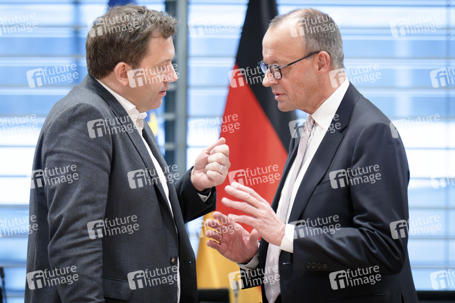 Lars Klingbeil und Friedrich Merz bei der Konferenz der Ministerpräsidenten der Länder im Kanzleramt. Berlin, 04.12.2025
