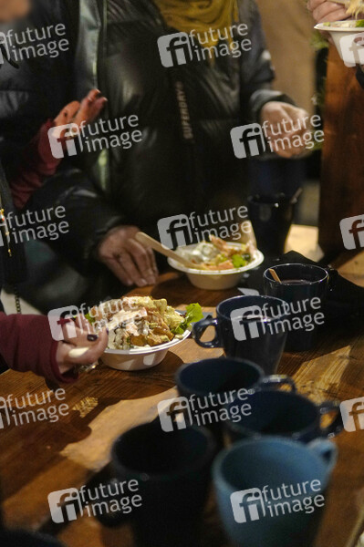 Gegrillter Lachs mit Beilagen auf dem Lucia Weihnachtsmarkt in der Kulturbrauerei. Berlin, 21.12.2024