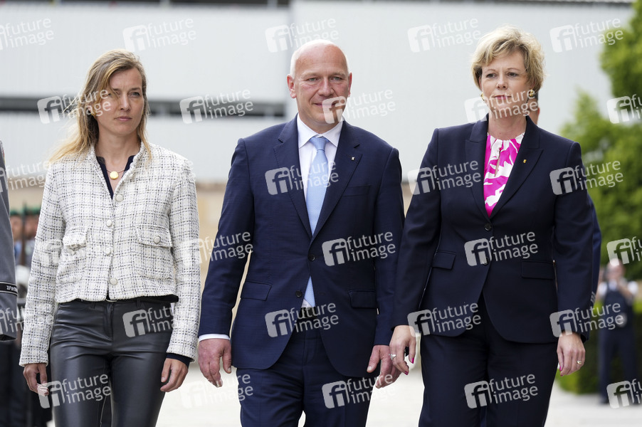 Siemtje Möller, Kai Wegner und Cornelia Seibeld beim öffentlichen Gelöbnis des Wachbataillons beim Bundesministerium der Verteidigung auf dem Vorplatz des Abgeordnetenhauses von Berlin. Berlin, 22.05.2024