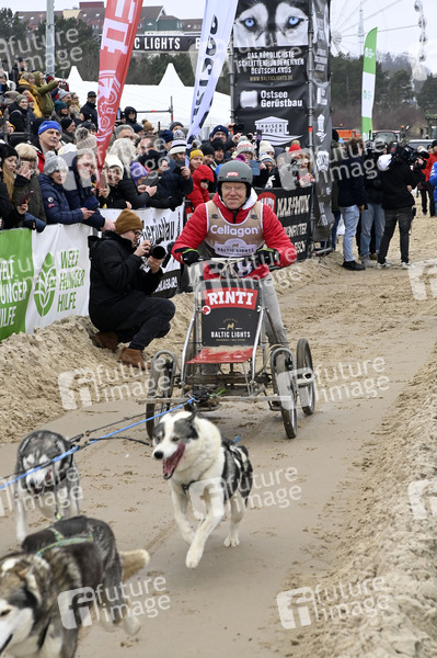 Wolfgang Lippert beim 9. Baltic Lights 2025 Charity-Schlittenhunderennen zu Gunsten der Welthungerhilfe zwischen der Seebrücke Ahlbeck und der Seebrücke Heringsdorf. Heringsdorf, 01.03.2025