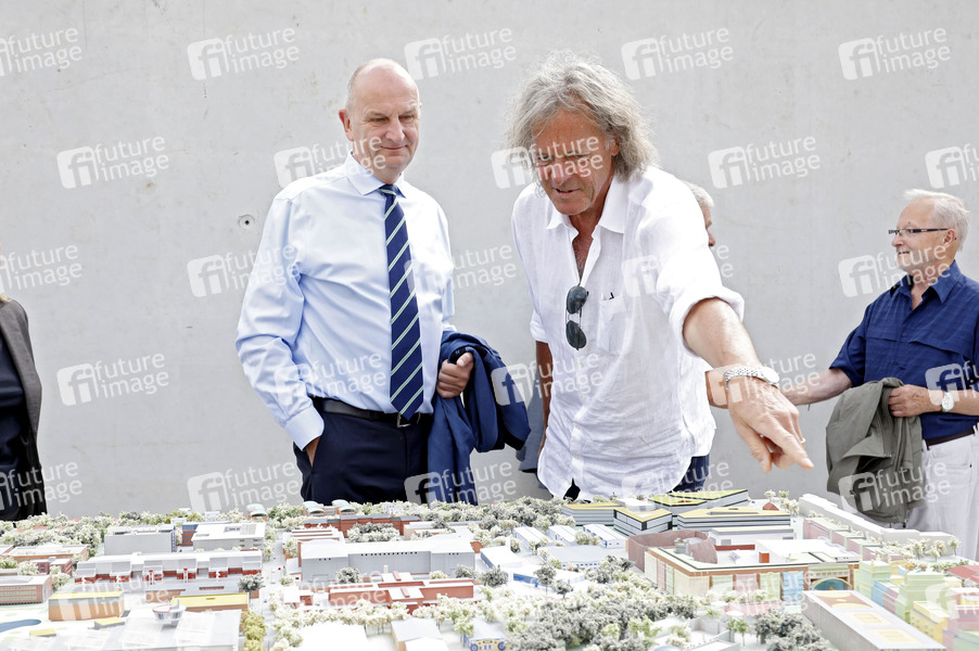 Dietmar Woidke und Friedhelm Schatz beim Pressetermin zur Grundsteinlegung von 'Das Depot' im Filmpark Babelsberg. Potsdam, 12.08.2019