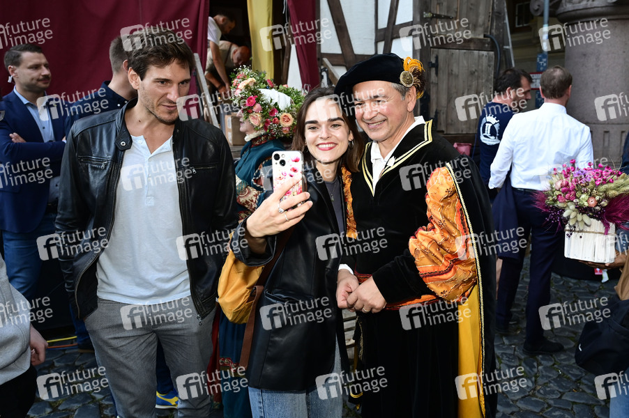 Silviana Ursu mit Ehemann Sebastian Ursu und Vater Octavian Ursu am Eröffnungstag vom Altstadtfest an der Altstadtbrücke. Görlitz, 29.08.2025
