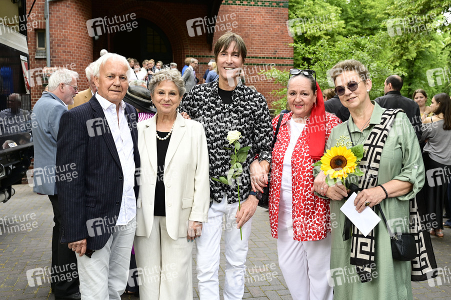 Gunter Sonneson, Dagmar Frederic, Rainer Genss, Sabine Denkinger und Carola Krautz-Brasin bei der Trauerfeier für Urte Blankenstein in der Kapelle des Waldfriedhofs Oberschöneweide. Berlin, 19.06.2025