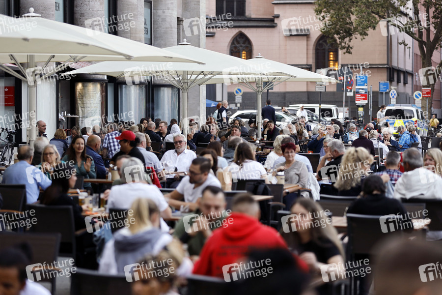 Menschen in der Kölner Innenstadt. Laut aktuellen Zahlen gelten 63 Prozent der Bevölkerung in der BRD als vollständig geimpft. Medien und Politik sprechen zunehmend von einer angeblichen 'Pandemie der Ungeimpften'. (Themenbild, Symbolbild) Köln, 18.09.2021