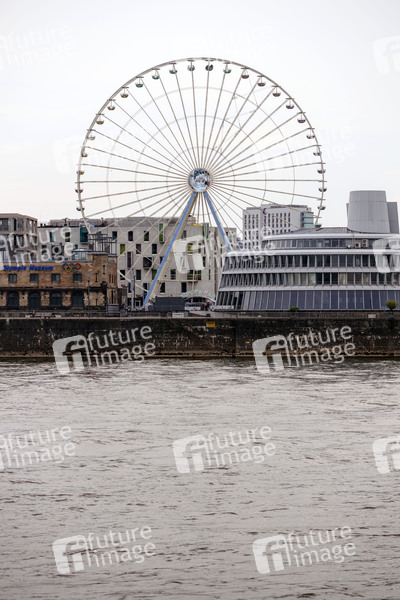 Riesenrad, Riesen-Rad, Attraktion, Schokoladenmuseum, Schausteller, Freizeit, Fahrgeschäft, Volksfest, Aussicht, Kölner Riesenrad, Tourismus, Sightseeing, Gondel, Gondeln, Vergnügen, Höhenangst, Symbolbild, Symbolfoto