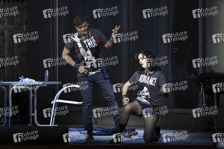 Pavol Breslik und Anna Prohaska bei der Fotoprobe zur Neuinszenierung von 'Die lustigen Weiber von Windsor' in der Staatsoper Unter den Linden. Berlin, 30.09.2019