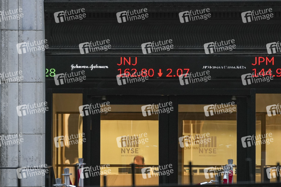 Blick auf die New York Stock Exchange / NYSE. Die Aktien fielen am Montag im frühen Handel erneut, erholten sich jedoch später und gewannen bis zum Ende des Tages etwas mehr als 100 Punkte. New York, 24.01.2022