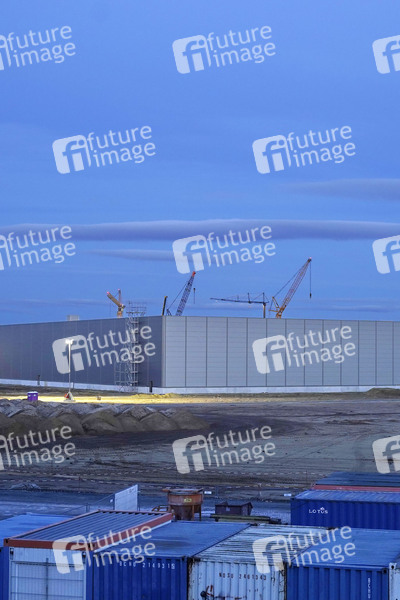 Elektroauto, Elektrofahrzeuge, PKW, Auto, Model Y, Model 3, Großfabrik, Automobilhersteller, Autobauer, Elektromobilität, umweltfreundlich, vorläufige Genehmigung, Batteriefabrik, Großprojekt, Investition, Baugenehmigung, Vorab-Genehmigung, E-Auto-Fabrik, Umwelt, Klimaschutz, Baustelle, Bauen, Baubranche, Bau-Branche, Bauarbeiten, Großbaustelle, Kran, Kräne, Baustelle, Wirtschaft, Autoproduktion
