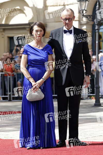 Friedrich Merz mit Ehefrau Charlotte Merz bei der Eröffnung der 113. Richard-Wagner-Festspiele 2025 mit der Neuinszenierung von 'Die Meistersinger von Nürnberg' im Bayreuther Festspielhaus. Bayreuth, 25.07.2025