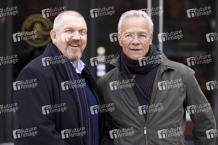Dietmar Bär und Klaus J. Behrendt beim Fototermin am Set des 80. Tatorts aus Köln 'Tatort - Der Tod der Anderen' am Hotel Rheinpalais. Köln, 27.11.2019