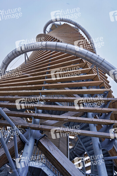 Der Harzturm ist ein 65 Meter hoher Aussichtsturm im Harz. Über eine Treppe oder einen Aufzug sind auf 45 Metern Turmhöhe zwei Panoramaplattformen, ein Skywalk mit gläsernem Boden und der Startpunkt einer 110 Meter langen Rutsche zu erreichen. Die hölzerne Turmschraube imitiert einen hohlen, drehwüchsigen Baumstamm. Dafür haben sich die österreichischen Planer, Architekt Dietmar Kaden und Tragwerksplaner Markus Lackner, das intelligente Naturdesign des aufgehenden Fichtenzapfens zum Vorbild genommen. Torfhaus, 25.02.2024