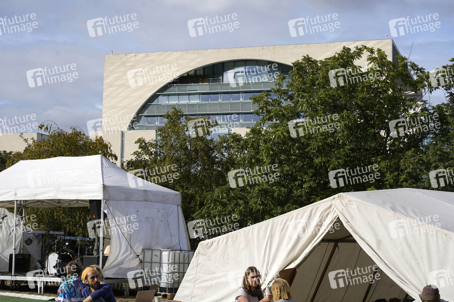 Demonstranten für den Klimaschutz beim Aufbau eines Protest-Camps vor dem Bundeskanzleramt. Berlin, 20.09.2019