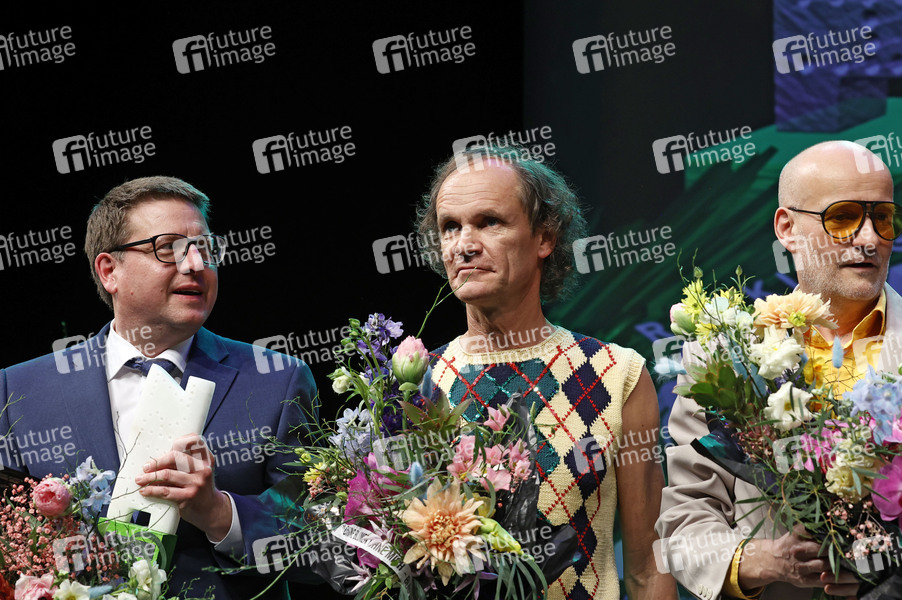 Kai Magnus Sting, Olaf Schubert und Mambo Kurt bei der Verleihung des Comedy-Preises Recklinghäuser Hurz im Ruhrfestspielhaus. Recklinghausen, 24.03.2025