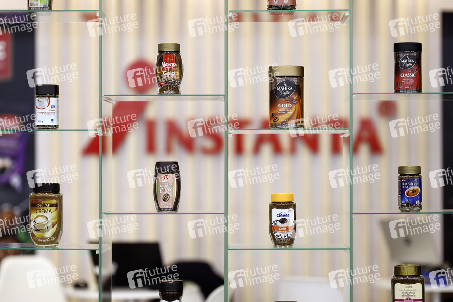Instanta, Instant-Tee, Instant-Kaffee, Fertig-Kaffee, Fertig-Tee, Fertigkaffee, Fertigtee, Anuga, Food, Ernährung, Essen, Trinken, Nahrung, Nahrungsmittel, Food-Messe, Lebensmittel-Messe, Lebensmittelmesse, FoodTech, Fachmesse, Innovationen, Nachhaltigkeit, pflanzliche Lebensmittel, Food-Trends, Laborfleisch, Flexitarismus, Tierwohl, neue Produkte, Anuga-Logo, Fahnen, Anuga-Fahnen, Symbolfoto, Symbolbild