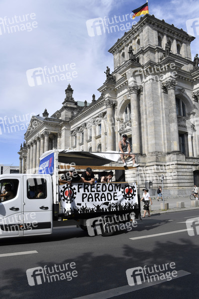 Mehrere Tausend Menschen bei der Demonstration und Kundgebung gegen die Corona-Politik der Bundesregierung unter dem Motto 'Das Ende der Pandemie - Der Tag der Freiheit' von der Straße Unter den Linden zur Straße des 17. Juni. Berlin, 01.08.2020
