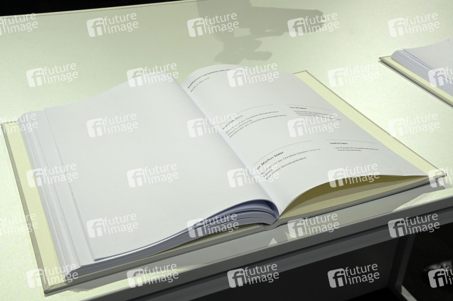Unterzeichnung des Koalitionsvertrages zwischen CDU, CSU und SPD im Gasometer Schöneberg. Berlin, 05.05.2025