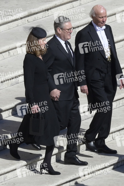 Keir Starmer mit Ehefrau Victoria Starmer bei der Trauermesse für den verstorbenen Papst Franziskus auf dem Petersplatz. Vatikanstadt, 26.04.2025