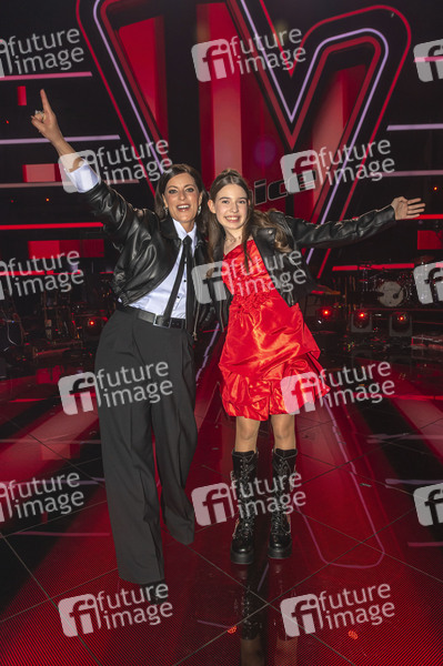 Stefanie Kloß und Arhanna beim Photocall mit den Finalisten und Coaches der 13. Staffel der TV-Show 'The Voice Kids' im Studio H Berlin-Adlershof. Berlin, 18.04.2025
