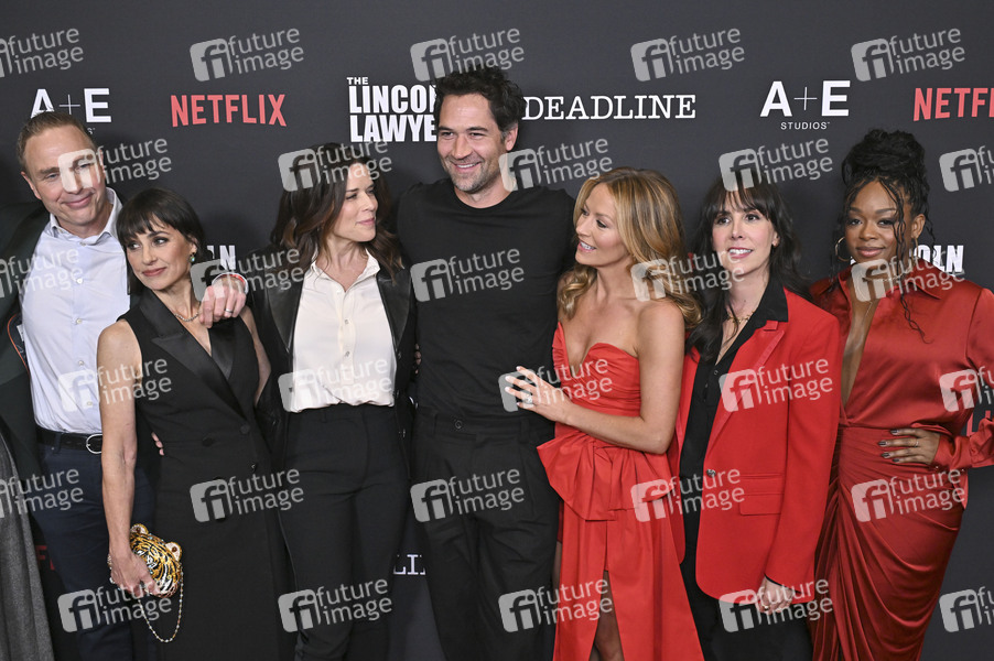 Ted Humphrey, Constance Zimmer, Neve Campbell, Manuel Garcia-Rulfo, Becki Newton, Darilyn Rodriguez und Jazz Raycole bei der Premiere der 4. Staffel der Netflix-Serie 'The Lincoln Lawyer' auf der PMC Rooftop Terrace . West Hollywood, 28.01.2026