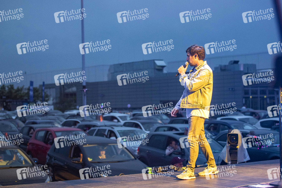 Musiker, Sänger, Pop, Musik, Konzert, Auftritt, Bühne, Stage, live, Unterhaltung, Entertainment, Kultur, Corona, Sars-CoV-2, Covid-19, Coronavirus, Coronakrise, Corona-Krise, Corona-Pandemie, Coronamaßnahmen, Corona-Schutz, Kontaktverbot, Mindestabstand, Social Distancing, Abstand, Abstandhalten, Abstandsregel, Auto, Autokonzertreihe, Autokonzert, Auto-Konzert