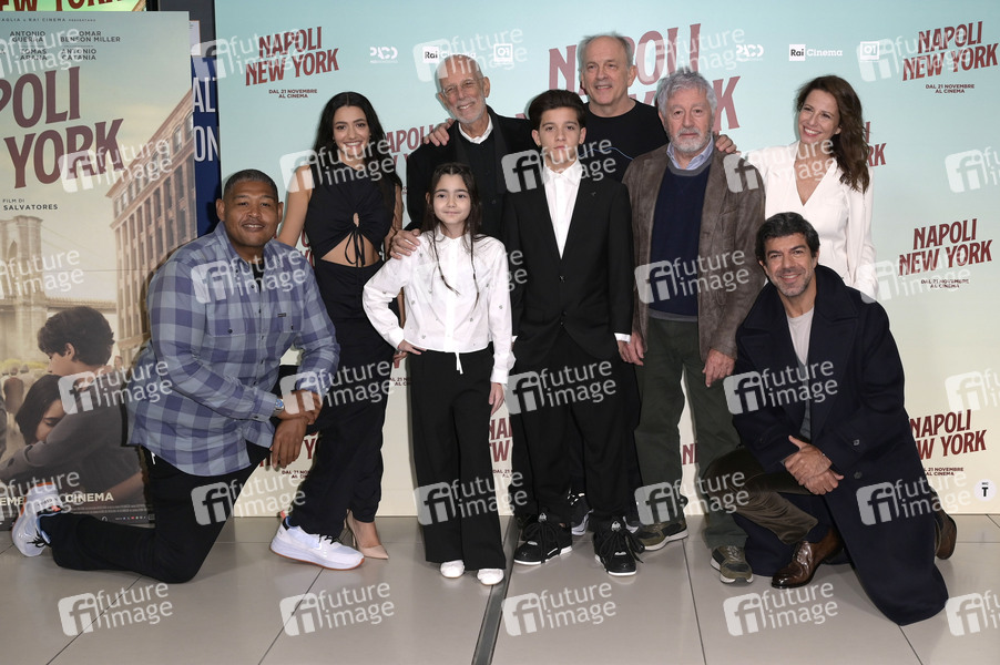 Omar Benson Miller, Anna Lucia Pierro, Antonio Guerra, Gabriele Salvatores, Tomas Arana, Dea Lanzaro, Antonio Catania, Anna Ammirati und Pierfrancesco Favino beim Photocall zum Kinofilm 'Napoli New York' im Cinema Adriano. Rom, 13.11.2024