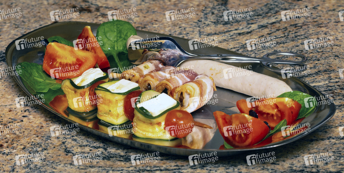 Das beliebteste Grillgut sind Fleisch und Würstchen in den verschiedensten Varianten. Vom mageren Geflügel, zum deftigen T-Bone-Steak bis zur klassischen Bratwurst. Aber auch vegetaisches und veganes Grillgut erfreute sich immer größerer Beliebtheit. Im Bild eine gemischte Grillplatte. (Symbolfoto, Themenfoto)