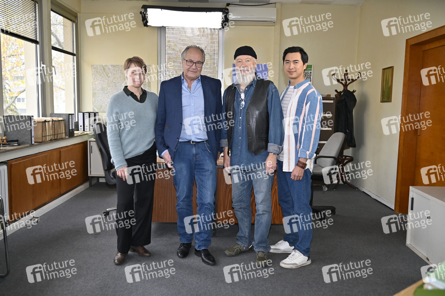 Katja Danowski, Hartmut Volle, Bill Mockridge und Aaron Le beim Fototermin am Set der ARD TV-Serie 'Rentnercops' in der Stolberger Straße. Köln, 01.12.2022