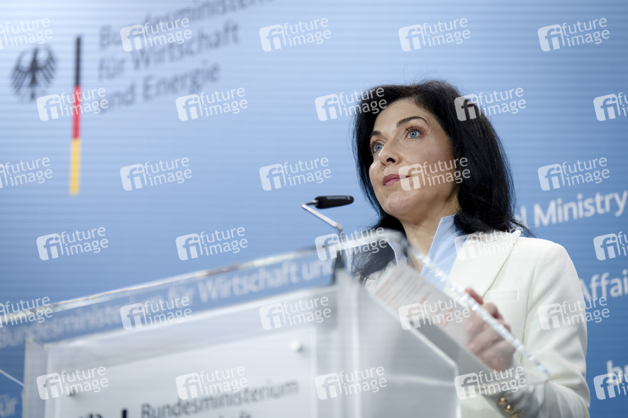 Katherina Reiche beim Pressestatement zu Kabinettsthemen im Bundesministerium für Wirtschaft und Energie. Berlin, 06.08.2025