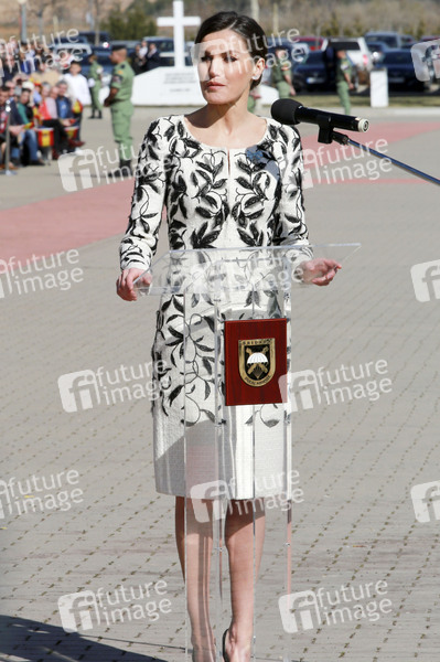 Königin Letizia von Spanien bei der Flaggenzeremonie der Fallschirmjägerbrigade Almogávares auf der Princip Base. Paracuellos de Jarama, 23.02.2019