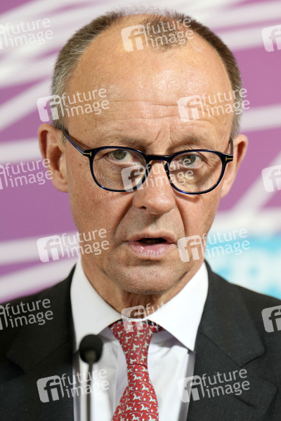 Friedrich Merz beim Pressestatement zur Fraktionssitzung der CDU/CSU-Bundestagsfraktion im Reichstagsgebäude. Berlin, 12.03.2024