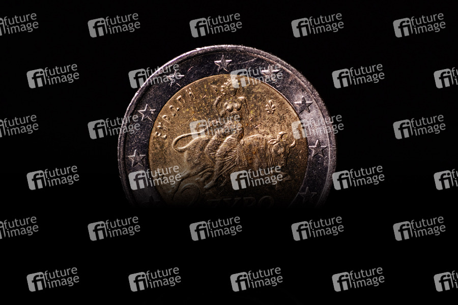 Eine 2-Euro-Münze im Lichteinfall.