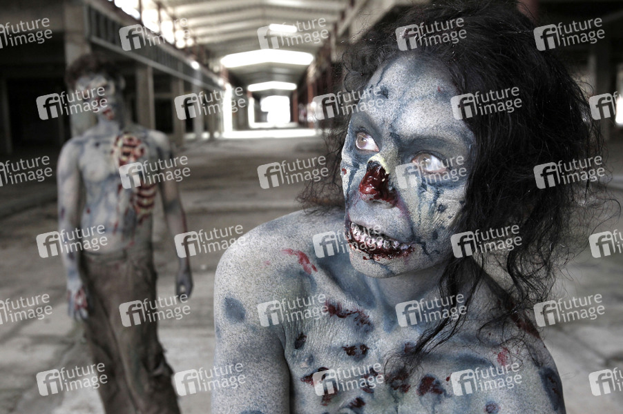 Bodypainting, Body-Painting, nackt, Akt, Körperkunst, Körperfarben, Farbe, Bemalung, Kunst, Malerei, Horror, Endzeit, zombifiziert, Untote, Ruine, Beißer, Streuner, lebende Tote, Zombie-Jäger, Fantastic, body painting, nude, female, body art, colors, walker, biter, ruin, Zombie hunter, The Walking Dead, The Living Dead