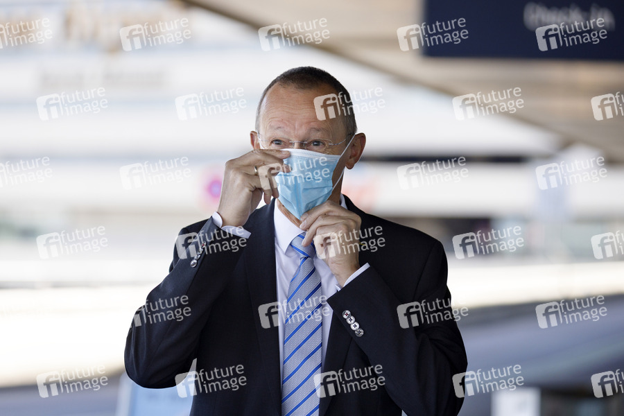 Johan Vanneste mit Mundschutz bei der Vorstellung des Sicherheitskonzepts am Flughafen Köln Bonn während der Coronakrise 'Sicher in Corona Zeiten'. Köln, 27.05.2020