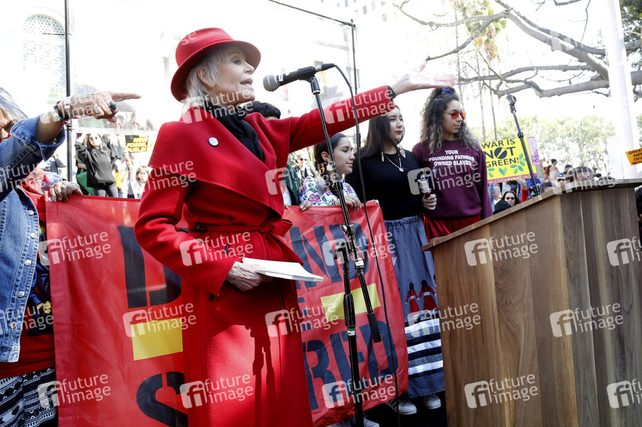 Jane Fonda bei der Fire Drill Fridays Kundgebung gegen den Klimanotfall vor dem Rathaus. Los Angeles, 07.02.2020