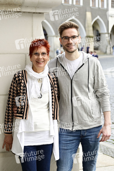 Lukas Natschinski mit Mutter Gundula Natschinski bei einer exklusiven Sightseeing-Tour auf dem Untermarkt in der Görlitzer Altstadt. Görlitz, 20.04.2025