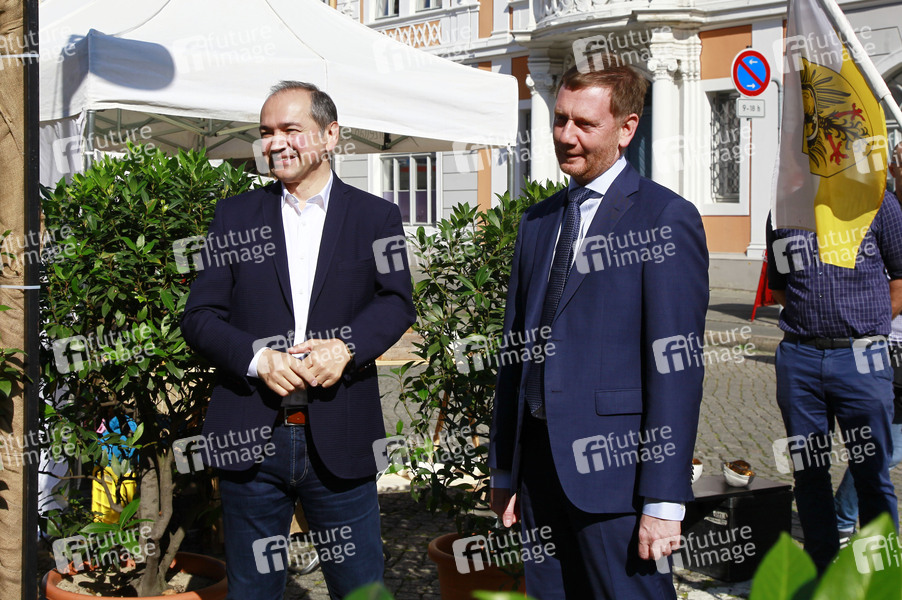 Oberbürgermeister Octavian Ursu und Ministerpräsident Michael Kretschmer bei der Eröffnung vom 22. Schlesischen Tippelmarkt. Görlitz, 18.07.2020