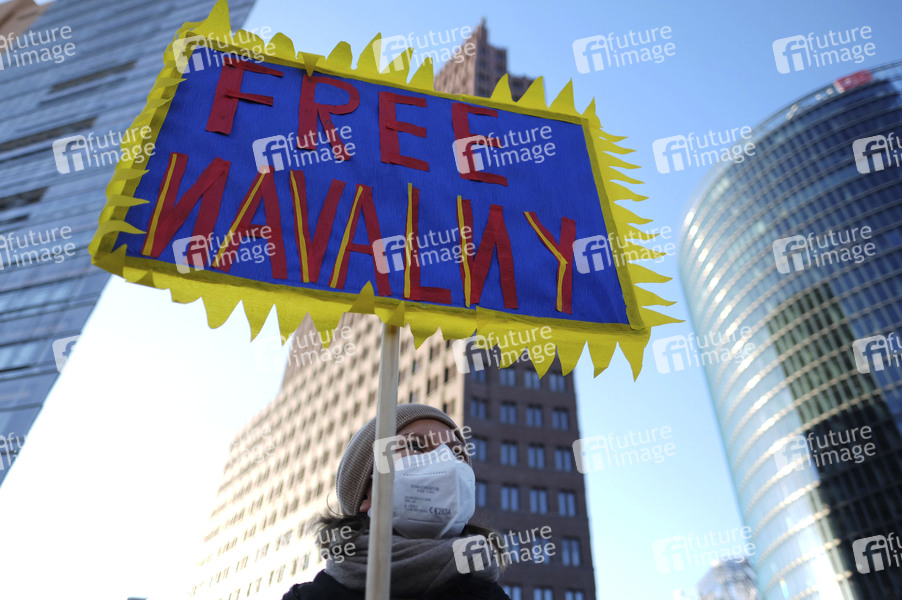 Mehrere hundert Demonstranten und Putin-Gegner demonstrieren in Berlin für die Freilassung des russischen Oppositionspolitikers Alexej Nawalny / Alexei Navalny aus russischer Haft. Sie fordern die Freilassung aller politischen Gefangenen und mehr Demokratie in Russland. Berlin, 31.01.2021